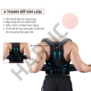 – Hệ thống nẹp cố định chắc chắn: Với 4 nẹp hỗ trợ, cột sống được ổn định, tư thế được điều chỉnh chuẩn, giảm áp lực lên lưng và vai, giúp lưng luôn thẳng và dáng đẹp tự nhiên.